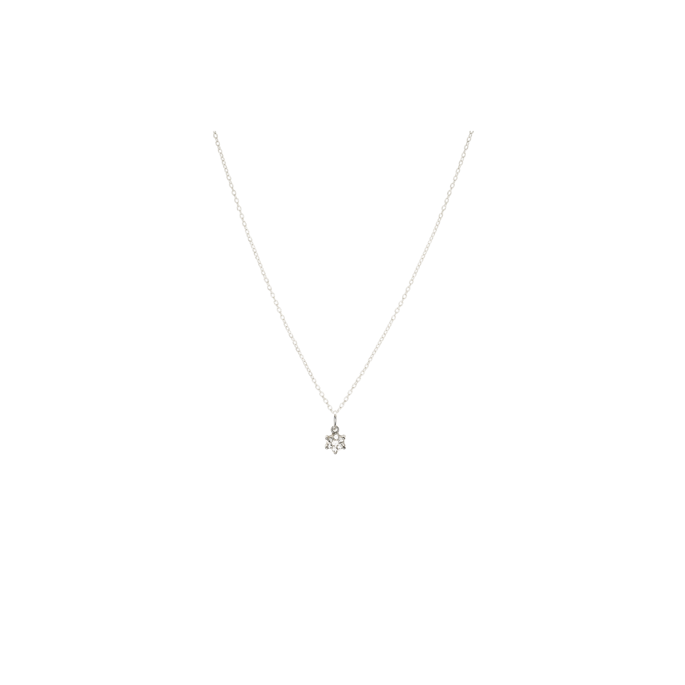 The Starlit Bloom Necklace shines like a tiny constellation captured in a flower. With five delicate crystals forming a radiant blossom, this piece adds effortless sparkle and charm to any look. A perfect blend of femininity and timeless beauty.