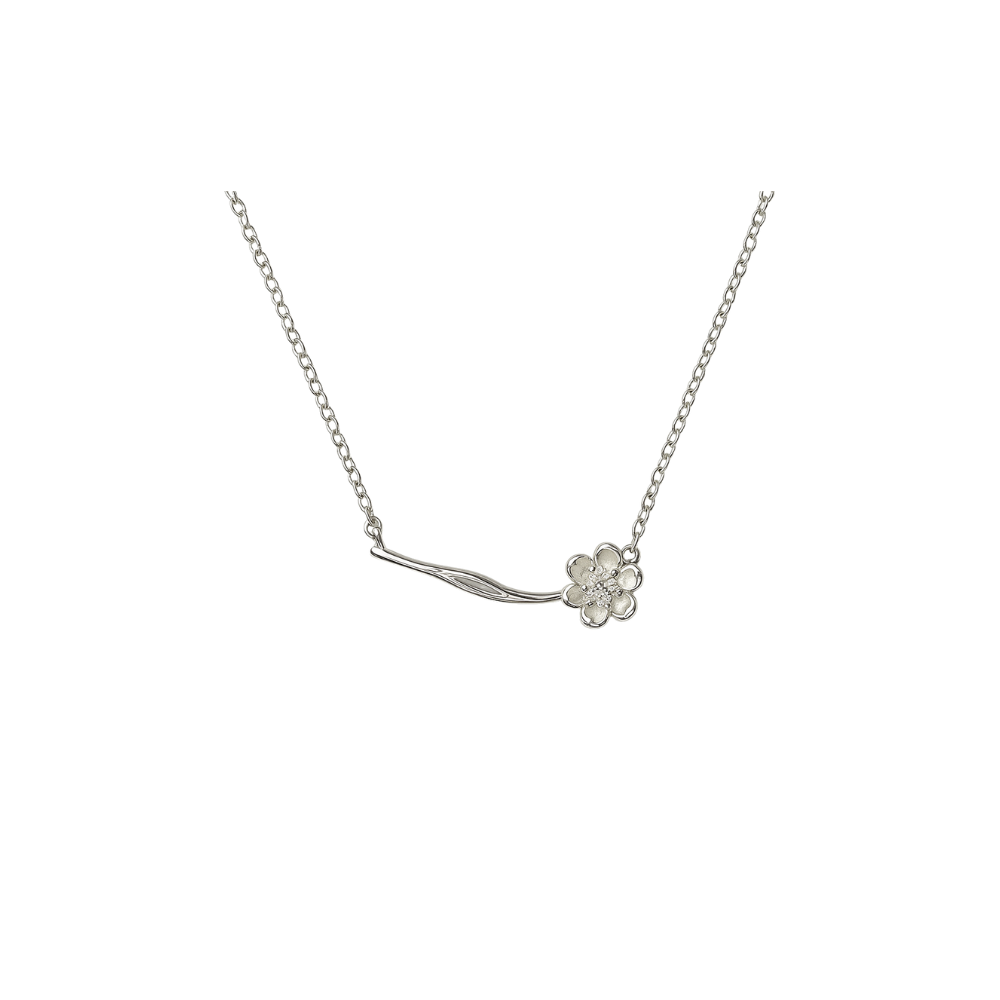 The Whispering Bloom Necklace captures the soft elegance of a single flower swaying in the breeze. With its graceful silver vine and delicate blossom detail, this piece adds a gentle, romantic touch to any look. Ideal for those who appreciate refined beauty and timeless simplicity.